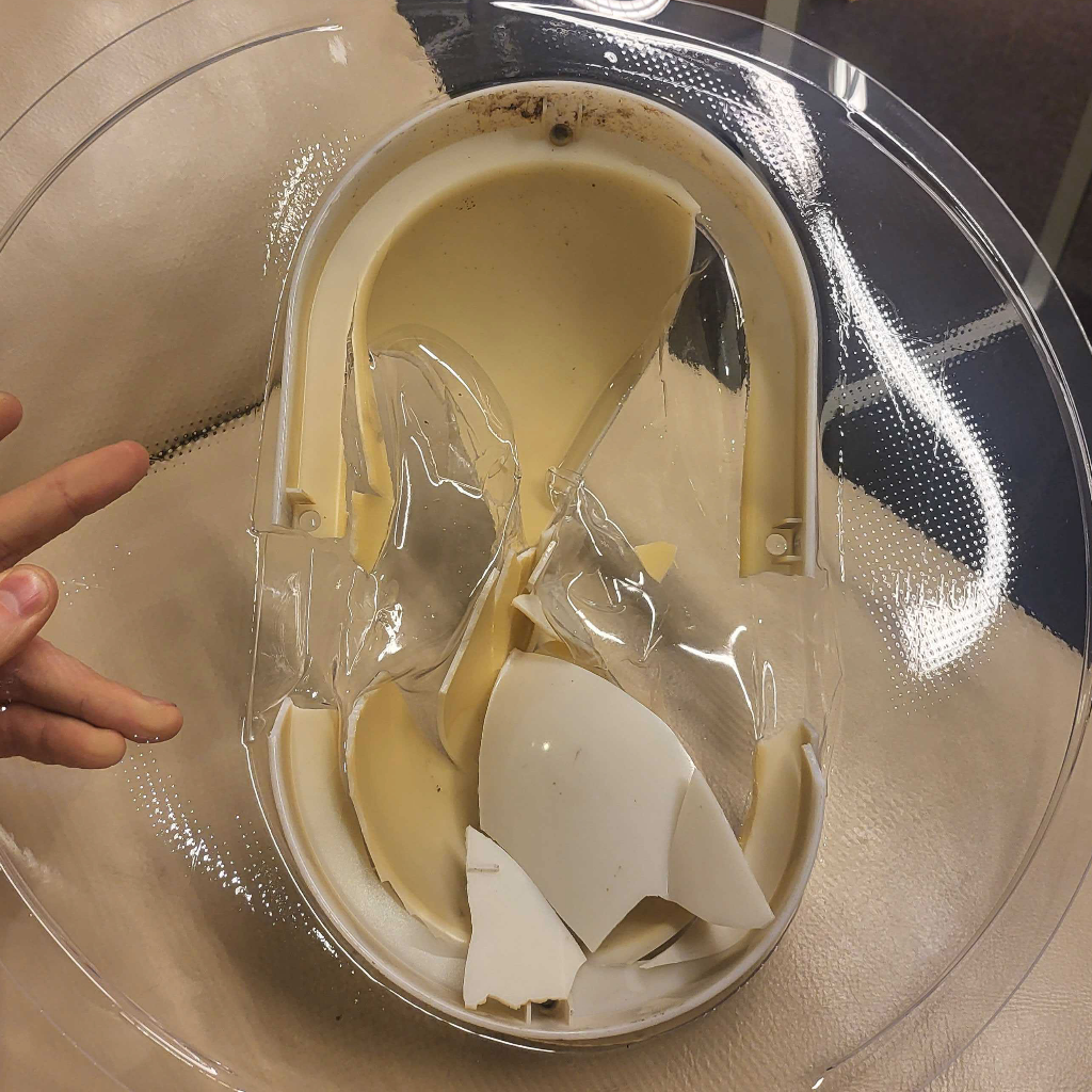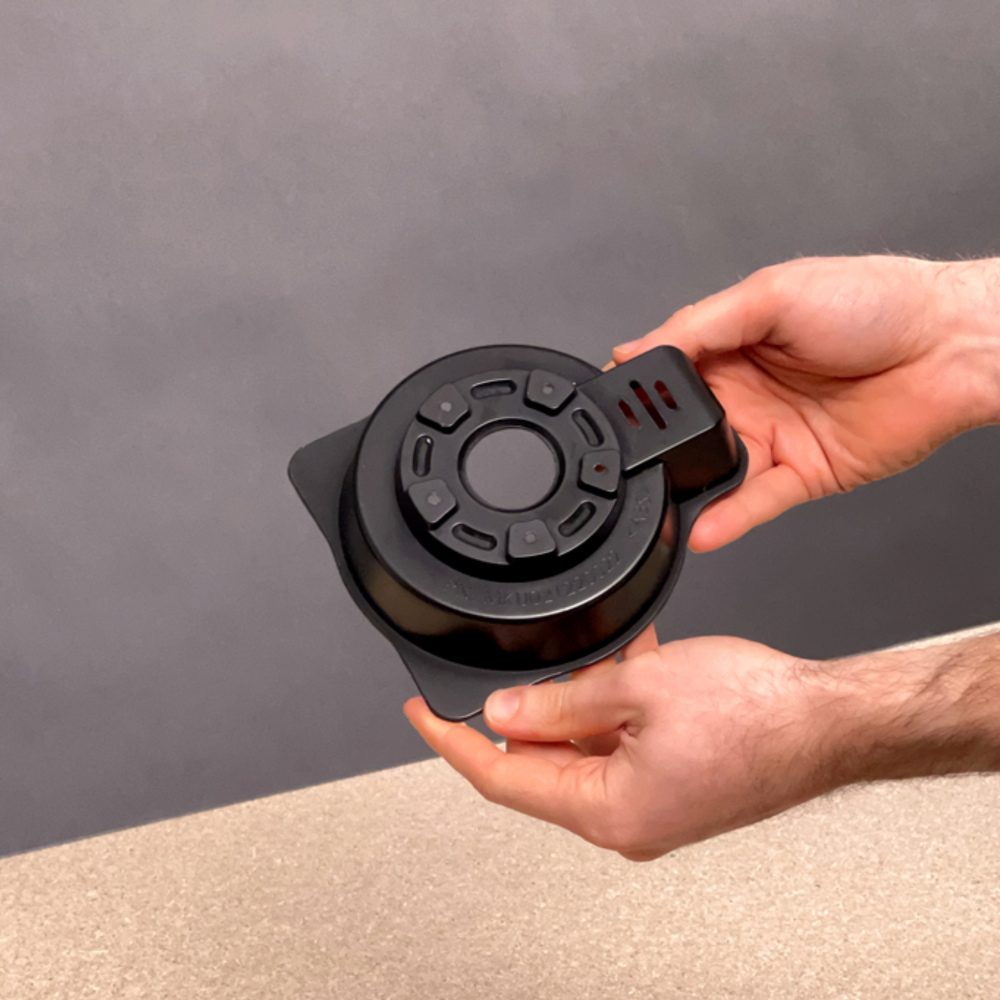 Før vi lagde støpeformen vår testet vi med en av de originale skjermene som form. Multiplier produserer over 5 tonn trykk som presser ned på formen, og den gamle, sprø herdeplasten måtte raskt gi opp for Multiplieren.