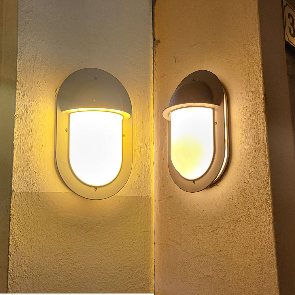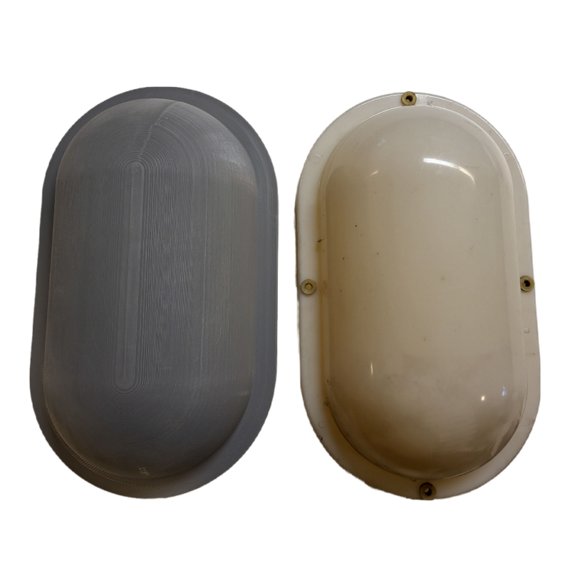 De ferdige lampeskjermene (original til venstre, ny til høyre) ble montert og resultatet taler for seg selv. Vi tør å påstå at kombinasjonen desktop 3D-printer og Multiplier ble en vinner for sameiet - den eneste tids- og kostnadseffektive løsningen hvor også den originale looken og øvrige form er ivaretatt.